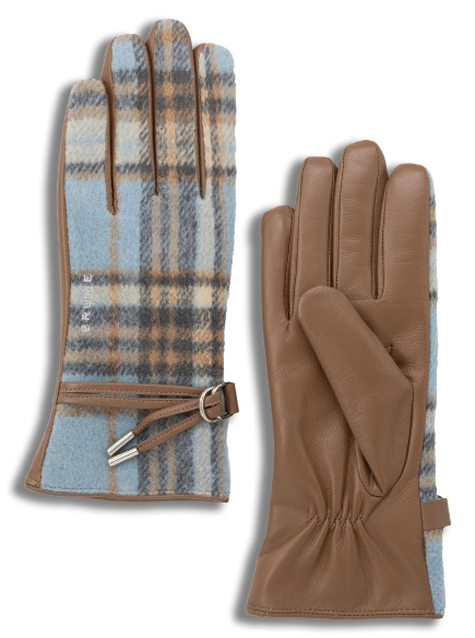The Waterville gloves; a refined cold-weather essential blending cozy comfort with timeless design. Crafted with a durable sheepskin leather palm and a stylish plaid-patterned knit back hand, these versatile gloves deliver warmth, flexibility and standout texture. A double cord adjustable wrist with sleek metallic detailing adds a tailored, modern touch, while an elasticized inner wrist ensures a snug, secure fit.