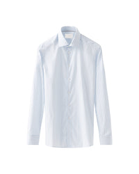 The Elevated Piqué is a luxurious fabric that’s woven in Italy by the renowned Albini mill, one of Eton’s most long-standing partners. Made with organic Supima cotton for a luxurious look and lightweight feel, the piqué fabric provides elegant definition to the light blue Bengal stripe. Finished with mother-of-pearl buttons and 2mm stitching to the collar and cuffs to elevate your look with sophisticated details.