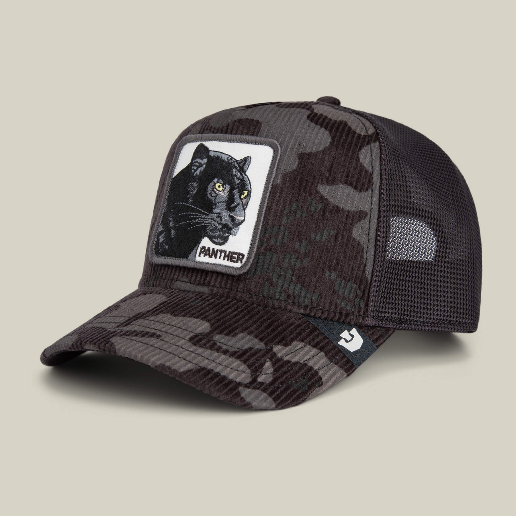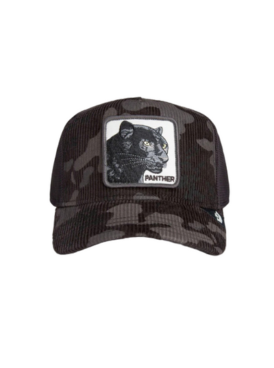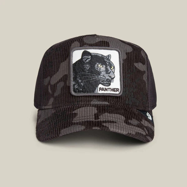 Panther Camo runs deep in dark charcoal corduroy with stealth camo layered throughout. The mesh keeps it cool, the patch keeps it intense. Every stitch is dialed in for silent confidence—the kind that watches the room before it enters.