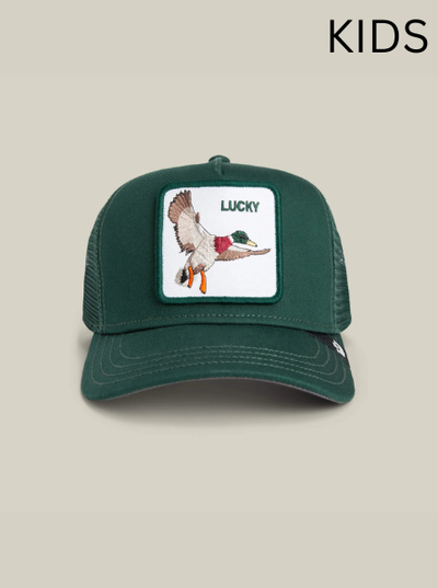 Green crown, flying duck patch, and a little charm stitched right in. Kid-sized for the ones who always seem to land on their feet—or waddle into trouble and come out smiling.