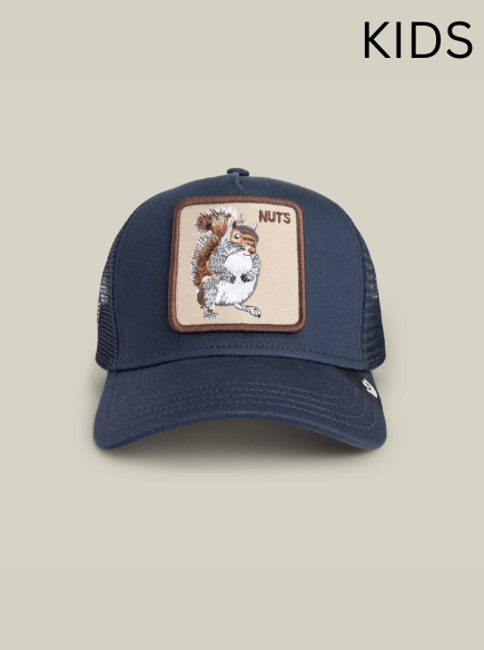 Squirrel patch, navy crown, and more energy than a double espresso. This kid-sized cap is made for the ones who can’t sit still—and wouldn’t want to anyway. Small hat, big chaos.