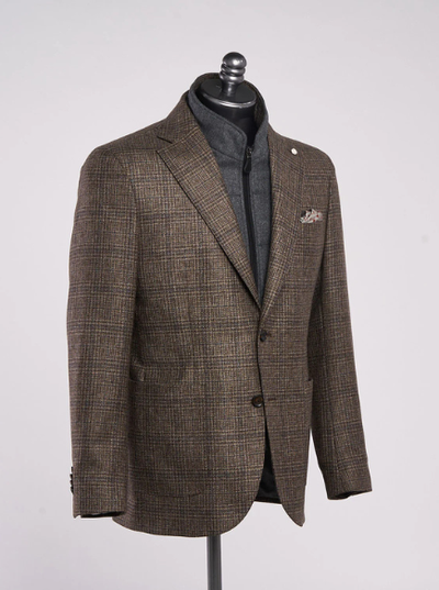 This stylish brown wool check sport jacket from Luigi Bianchi Mantova is perfect for a variety of occasions. Wear it to a winter wedding or a business meeting to make a sophisticated statement. The fabric weight of 315 gr. ensures warmth and comfort, while the slim, contemporary fit adds a modern touch to your look. Embrace the timeless elegance of this Italian-made piece and elevate your fall and winter wardrobe with its versatile and refined appeal.