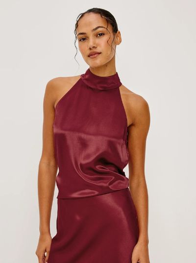 The Leah is a timelessly sophisticated halter top cut from luxe satin crepe. Featuring a high neck with a button closure, it flows with a fluid, babydoll-inspired fit.